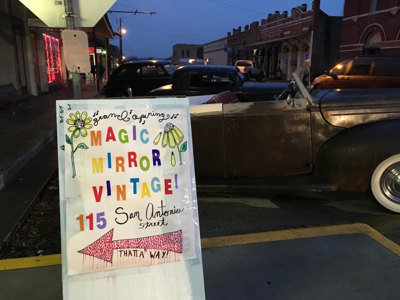 That wonderful feeling is just what I experienced when I walked into The Magic Mirror in Lockhart Texas. Located downtown, this is a great place to visit and find that perfect vintage outfit or other memorabilia that will carry you back in time.